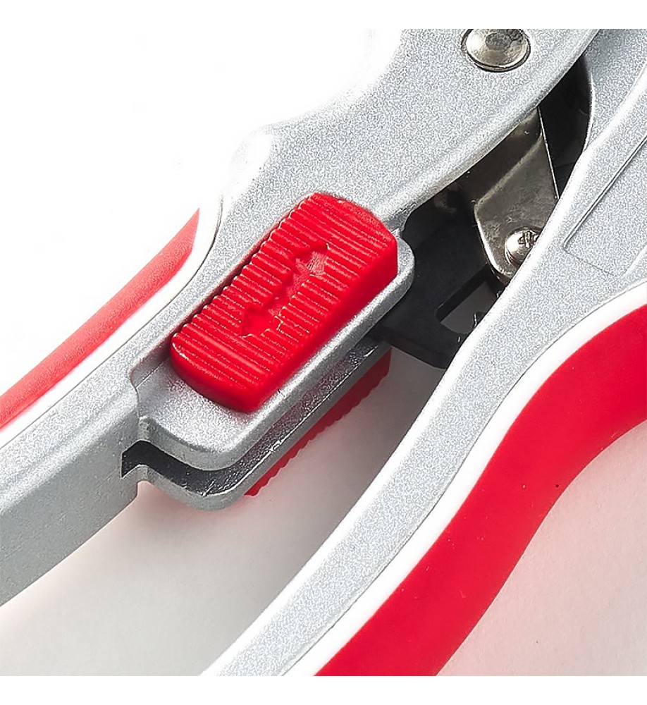 When pruning stiffer branches, the ratchet automatically locks after each press, allowing you to release and then apply more pressure, breaking down a strenuous cut into multiple easy movements.