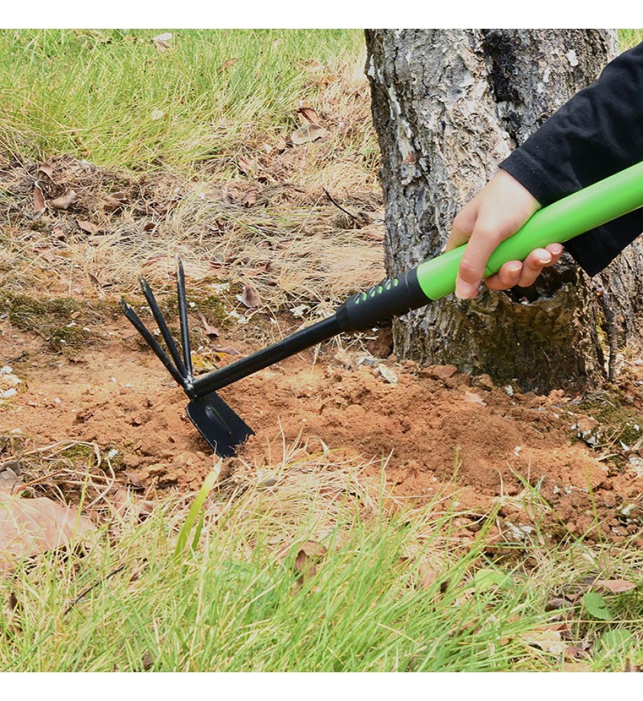 Multi-functional combination: Meets various gardening needs such as loosening soil, turning soil, weeding, raking, and planting.