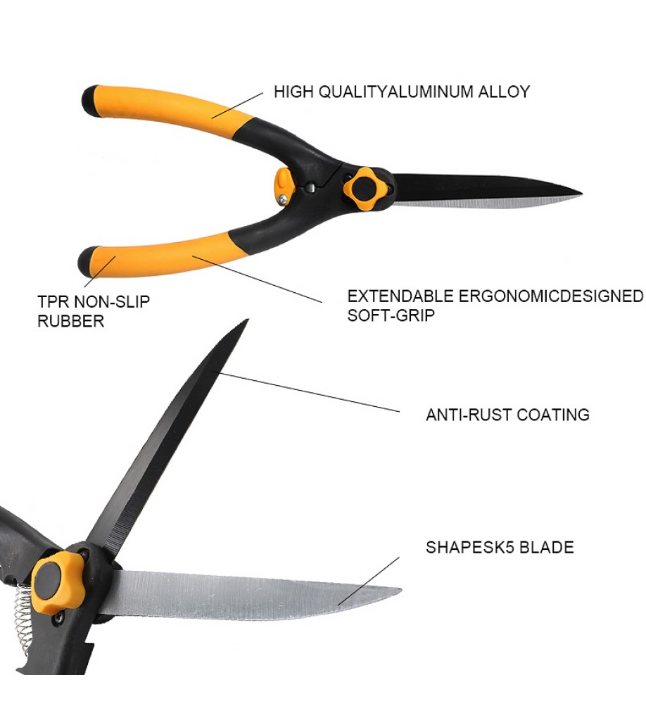 These high-quality hedge pruners feature a retractable aluminum alloy handle and SK5 high-carbon steel blades, balancing sharpness, comfort, and durability, making them easy to use for both daily pruning and extended gardening sessions.